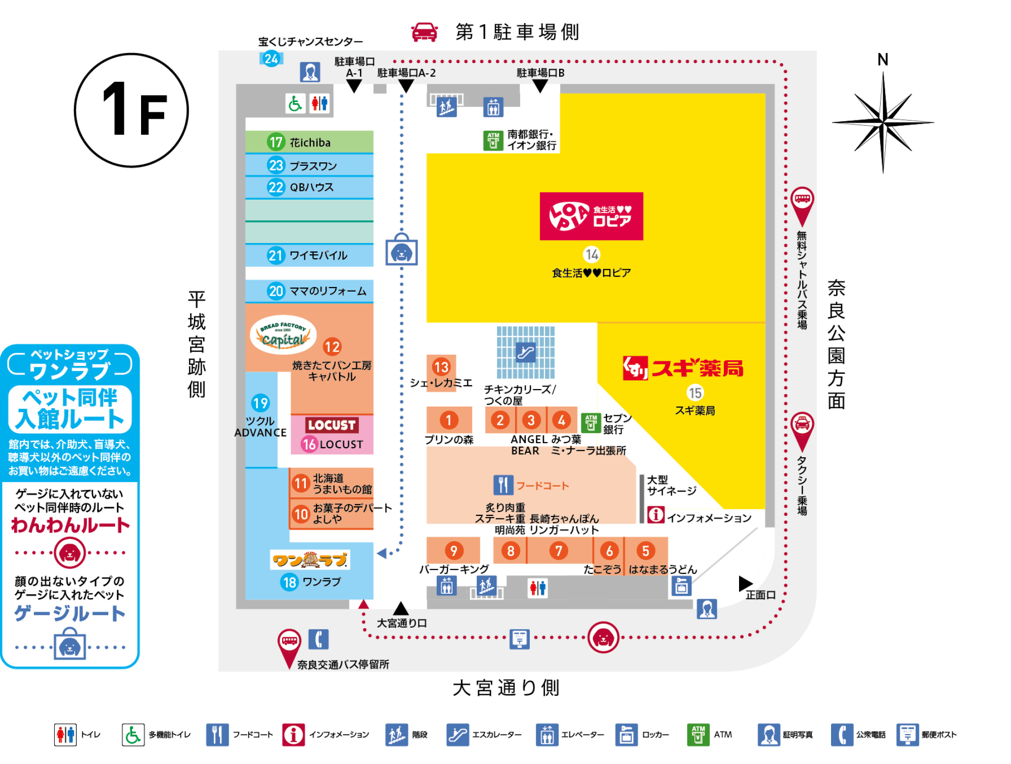 フロアガイド 1F|ミ・ナーラ | 奈良県奈良市二条にある観光型ショッピングセンター
